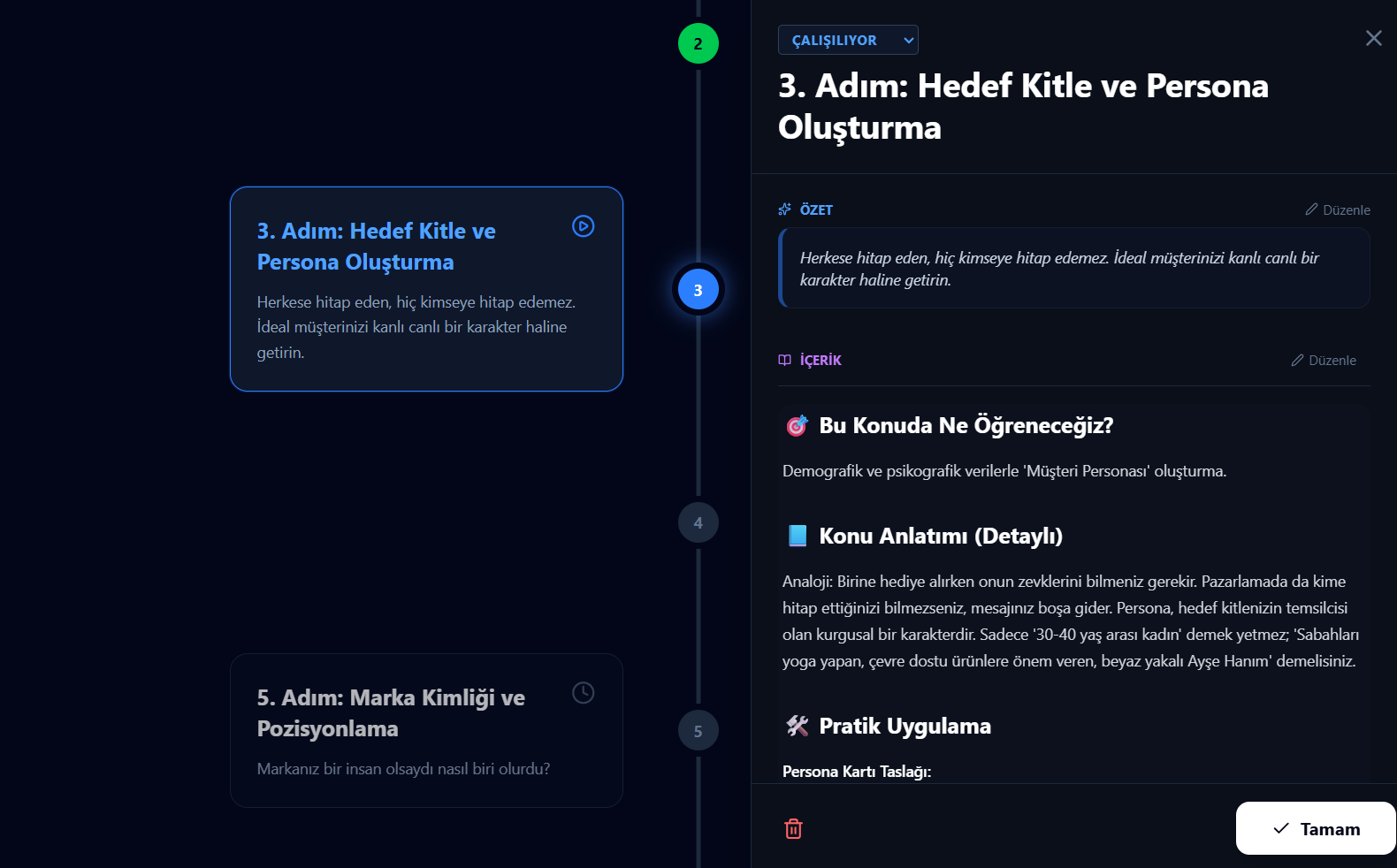 Öğrenmek istediğin konuyu veya projenin nihai hedefini belirle. İstersen yapay zeka asistanımız senin için en ideal taslağı çıkartsın.